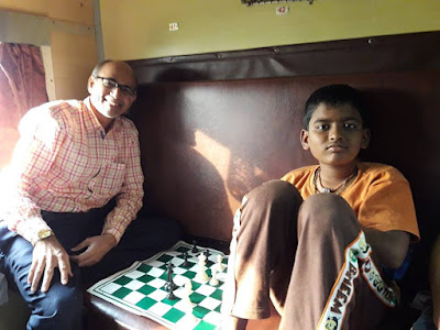 On a train from Mumbai to Surat, I was lucky to meet and play a game of chess with the national school level chess player (4th ranker) Senthanigh (spoken as Senthanil). Of course, he defeated me, but it was a great experience. Actually, he was going to Vapi to take part in a 15 day camp-cum-tournament.